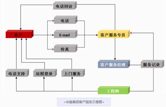远程支持:通过热线、网络(QQ、邮箱、传真)、远程登录和远程管理等方式向客户提供更直接的服务。